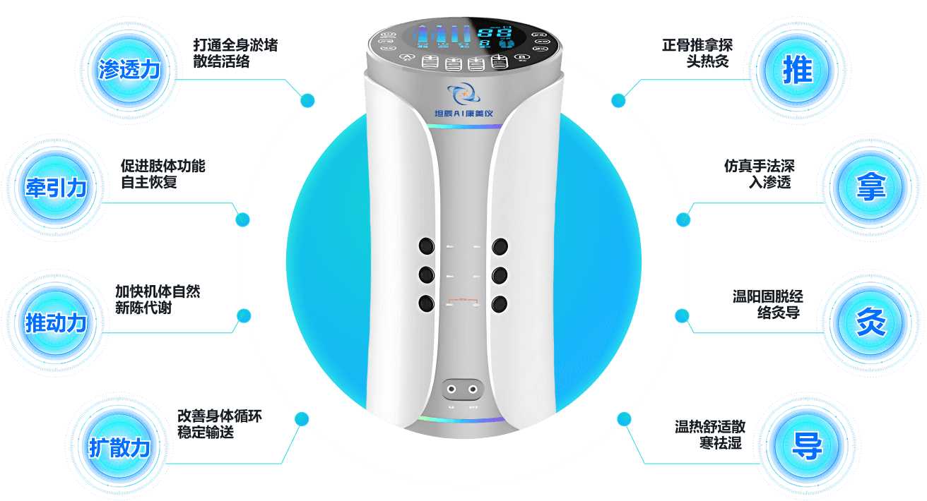 坦辰AI康美仪利用人体生物电波理疗技术,德国的远红外线技术。结合东方中医经络学和足底反射区理论研制出来的一款疏通经络的仪器,释放出的法拉蒂波能有效透过皮肤渗透至人体内部,进行肌肉收缩运动和扭曲运动,短时间内给予最大运动效果,对健康进行管理,从而达到养生保健的效果。